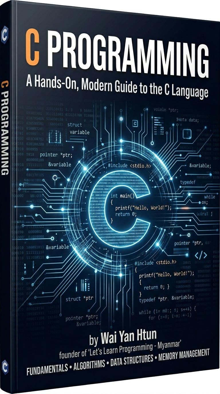 "C for Beginners" ဆိုတဲ့ စာအုပ်လေးဟာ Programming နယ်ပယ်ထဲကို ယုံကြည်မှုရှိရှိ ခြေလှမ်းစတင်လိုသူများအတွက် အထူးရည်ရွယ်ထားပြီး၊ C Language ရဲ့ အခြေခံ ( Fundamentals ) များမှစ၍ Flow Control, Functions နှင့် Arrays အစရှိသည့် အရေးပါသော Logic အပိုင်းများကို စနစ်တကျ သင်ကြားပေးသွားမည် ဖြစ်ပါသည်။ ထို့အပြင် Programmer ကောင်းတစ်ယောက် ဖြစ်လာစေရန် မရှိမဖြစ်လိုအပ်သည့် Pointers, Strings , Structure & Union နှင့် File Handling ကဲ့သို့သော Core Concept များကိုပါ လက်တွေ့ကျကျ လေ့လာရမည်ဖြစ်သောကြောင့်၊ ဤစာအုပ်ပြီးဆုံးပါက မည်သည့် Programming Language ကိုမဆို အလွယ်တကူ ဆက်လက်လေ့လာနိုင်မည့် အခြေခံကောင်းများကို ပိုင်ဆိုင်သွားမည်ဖြစ်ကြောင်း သတင်းကောင်းပါးအပ်ပါသည်။